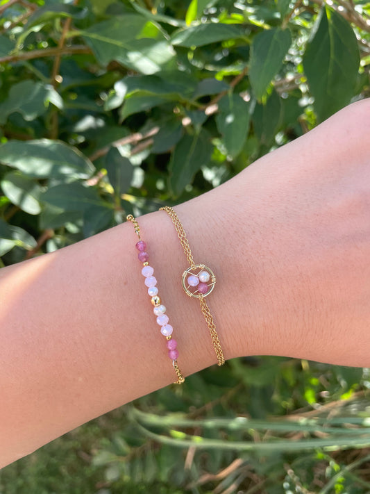 Bracelet NINON – Perles d’eau douce, pierres fines & acier inoxydable doré