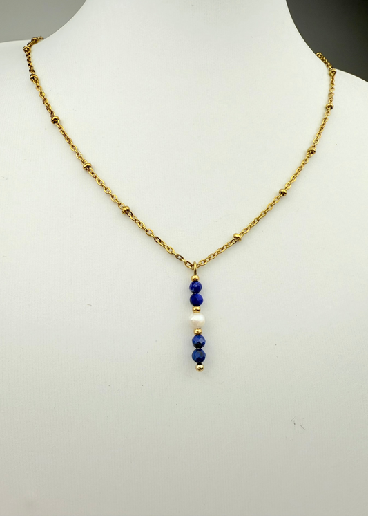 ELINE - Collier doré, pierres naturelles et perles d'eau douce